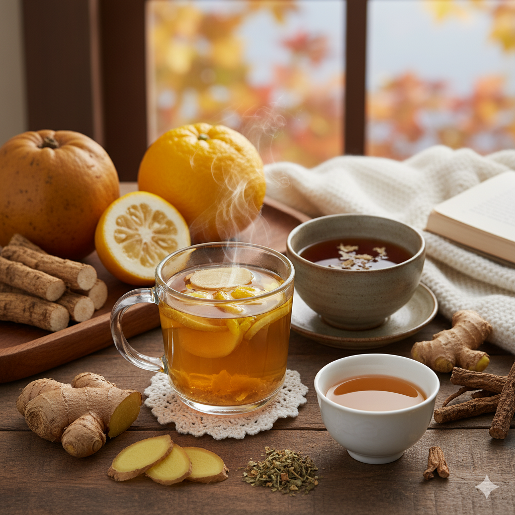아침저녁으로 쌀쌀해진 날씨에는 체온 유지가 매우 중요합니다. 따뜻한 차 한 잔은 몸을 따뜻하게 해주어 면역력을 높이는 데 효과적입니다. 감기 예방에 좋은 생강차는 몸을 따뜻하게 하고 혈액순환을 촉진하며, 비타민C가 풍부한 유자차는 피로 회복에 도움을 줍니다. 기관지에 좋은 도라지차, 감기 초기 증상에 좋은 모과차도 좋은 선택입니다. 따뜻한 차를 마시면 몸이 따뜻해질 뿐만 아니라, 충분한 수분 섭취로 체내 노폐물 배출에도 도움이 됩니다. 커피 대신 따뜻한 차를 마시는 습관으로 건강을 챙겨보세요!